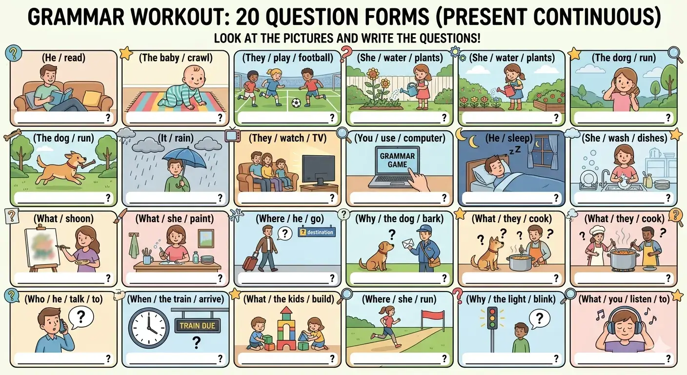 ⚠️ Just like Simple Present, the auxiliary verb moves to the front to signal a question. You cannot just add a question mark.